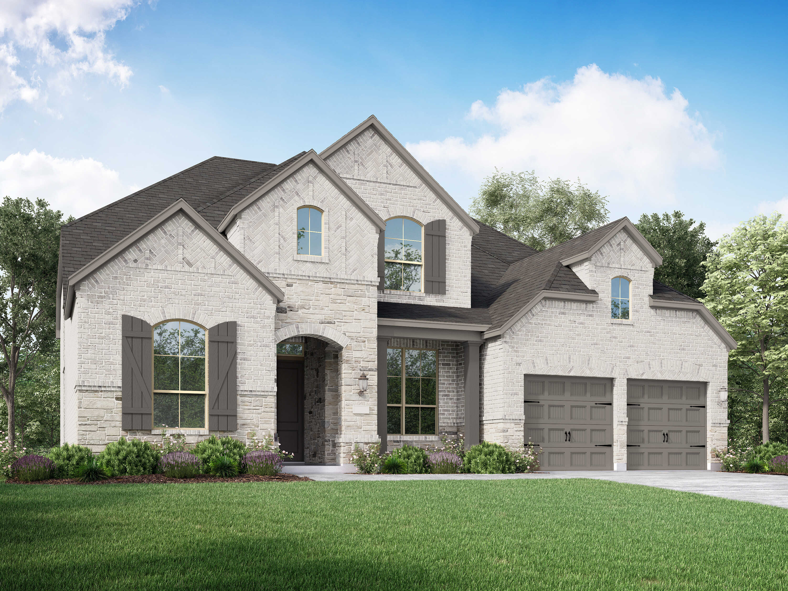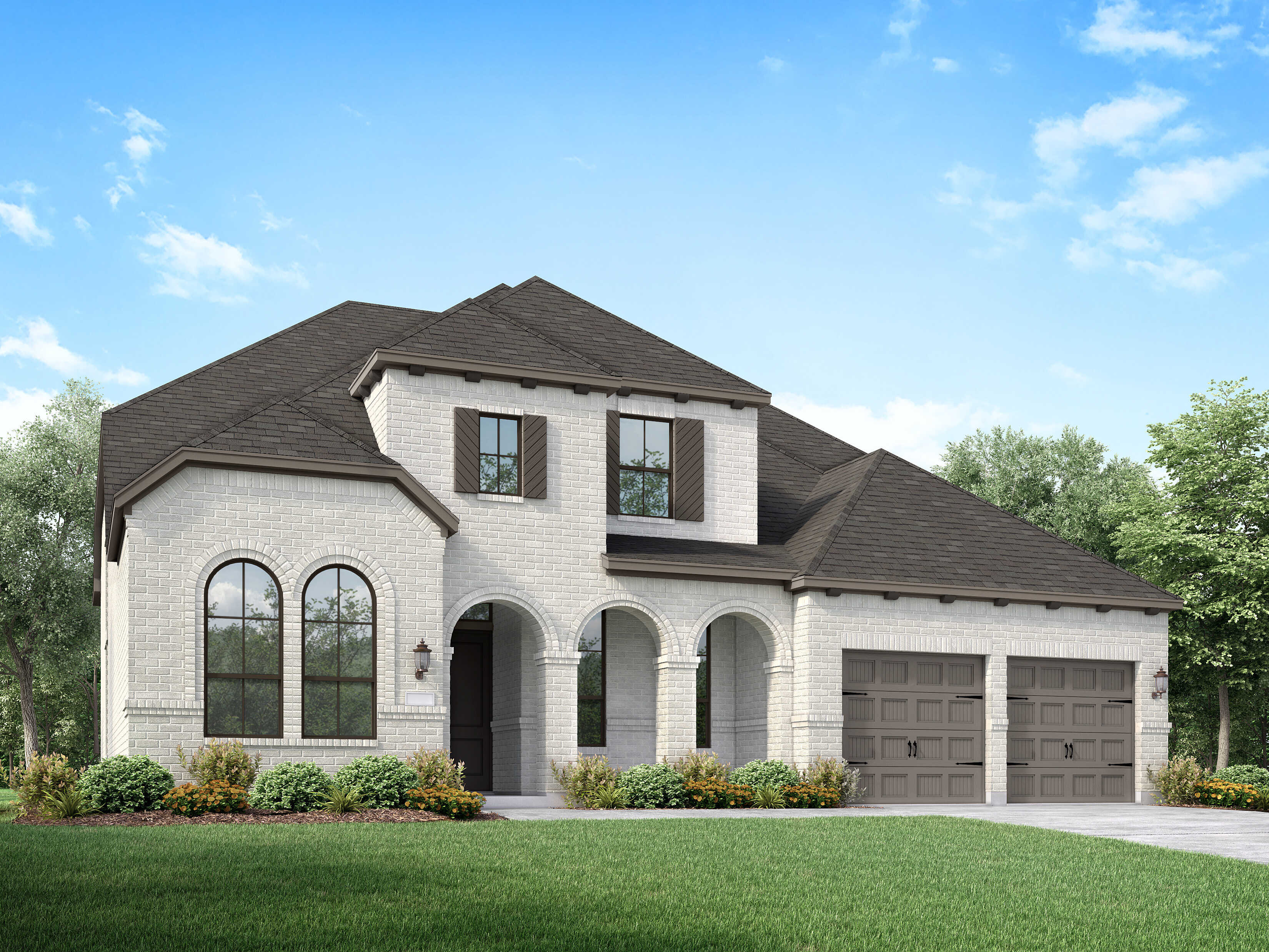 Select an exterior image for pricing and square footage.Swipe through exterior images for pricing and square footage. Exterior elevation images are representative only - optional upgrades of brick, stone, garage doors, and shutters may be shown. Please see your sales counselor for more details.