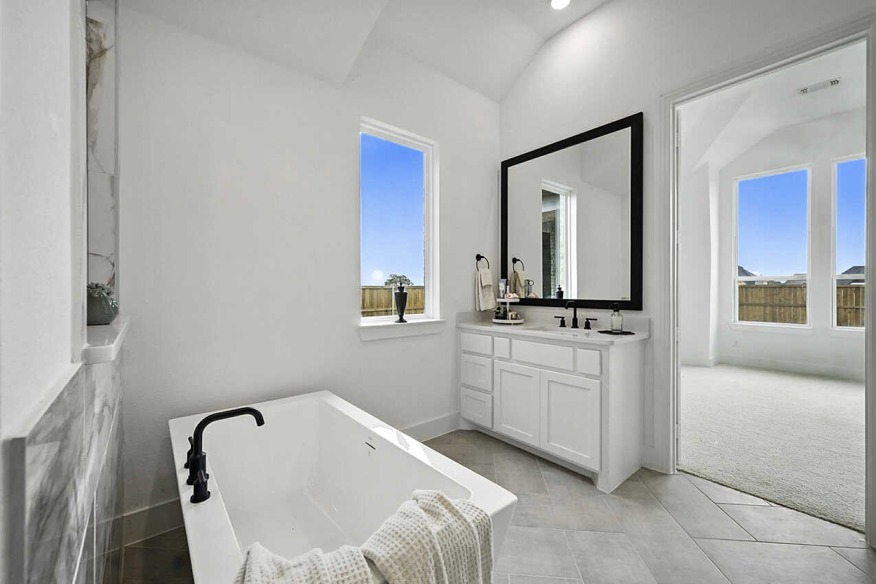 Extended Outdoor Living, Bay Window in Primary Bedroom, Primary Bath - Freestanding Tub w/Shower, Fireplace (at Family Room), 3rd Car w/Breezeway