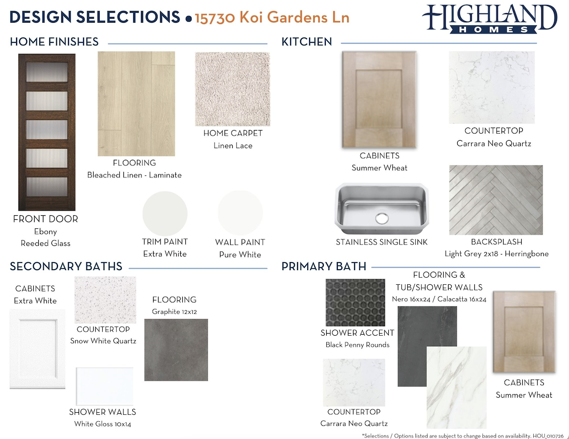 Since this home is already under construction, all structural options are finalized. However, depending on the level of completion, some design options may still be selected.