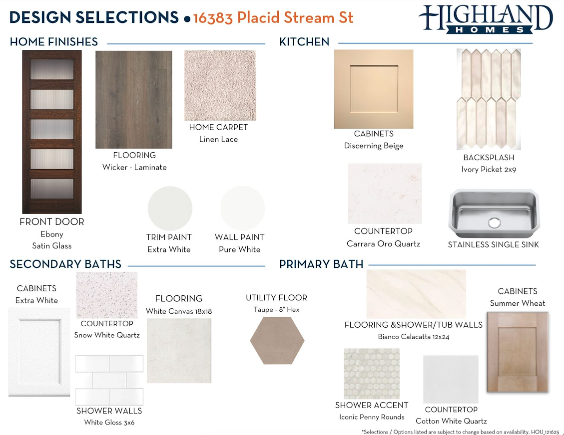 Since this home is already under construction, all structural options are finalized. However, depending on the level of completion, some design options may still be selected.