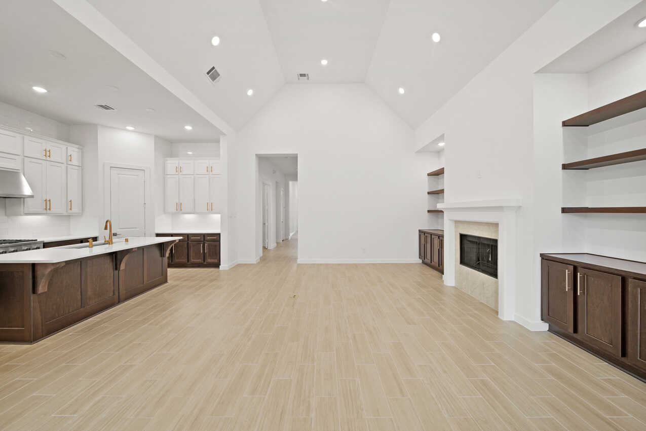 Cabinets at Family Room, Fireplace (at Family Room), Powder, Private Bath, Add'l 1/2-Car Bay, Rear Brick/Extended Outdoor Living