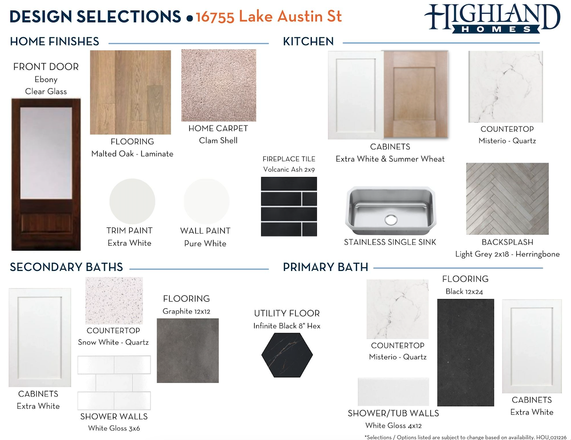 Since this home is already under construction, all structural options are finalized. However, depending on the level of completion, some design options may still be selected.