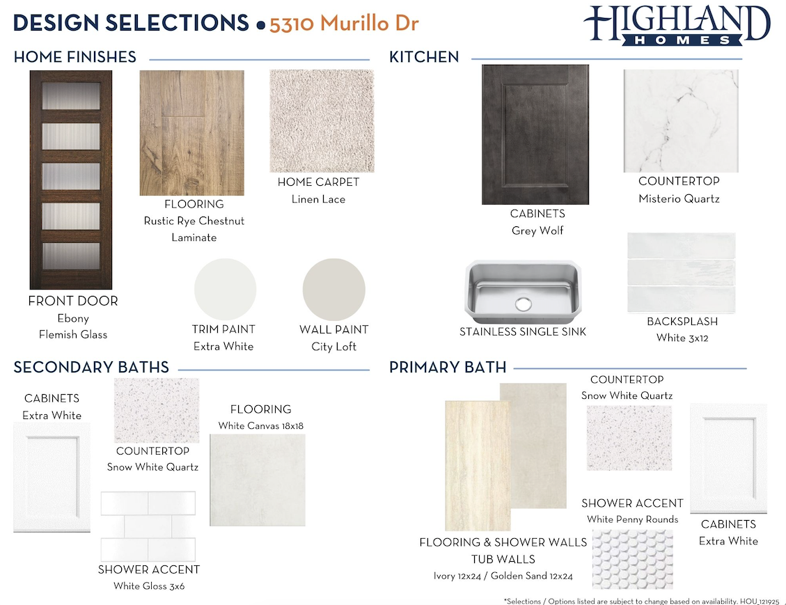 Since this home is already under construction, all structural options are finalized. However, depending on the level of completion, some design options may still be selected.
