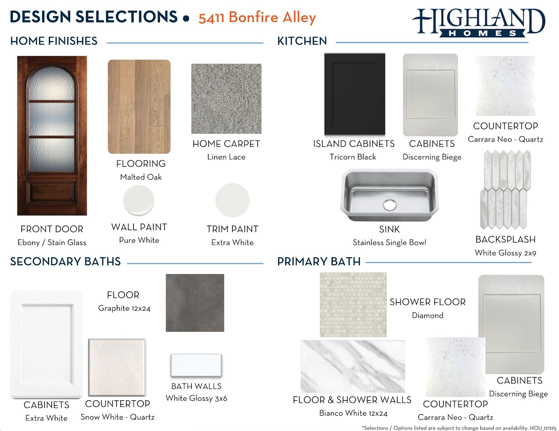 Since this home is already under construction, all structural options are finalized. However, depending on the level of completion, some design options may still be selected.