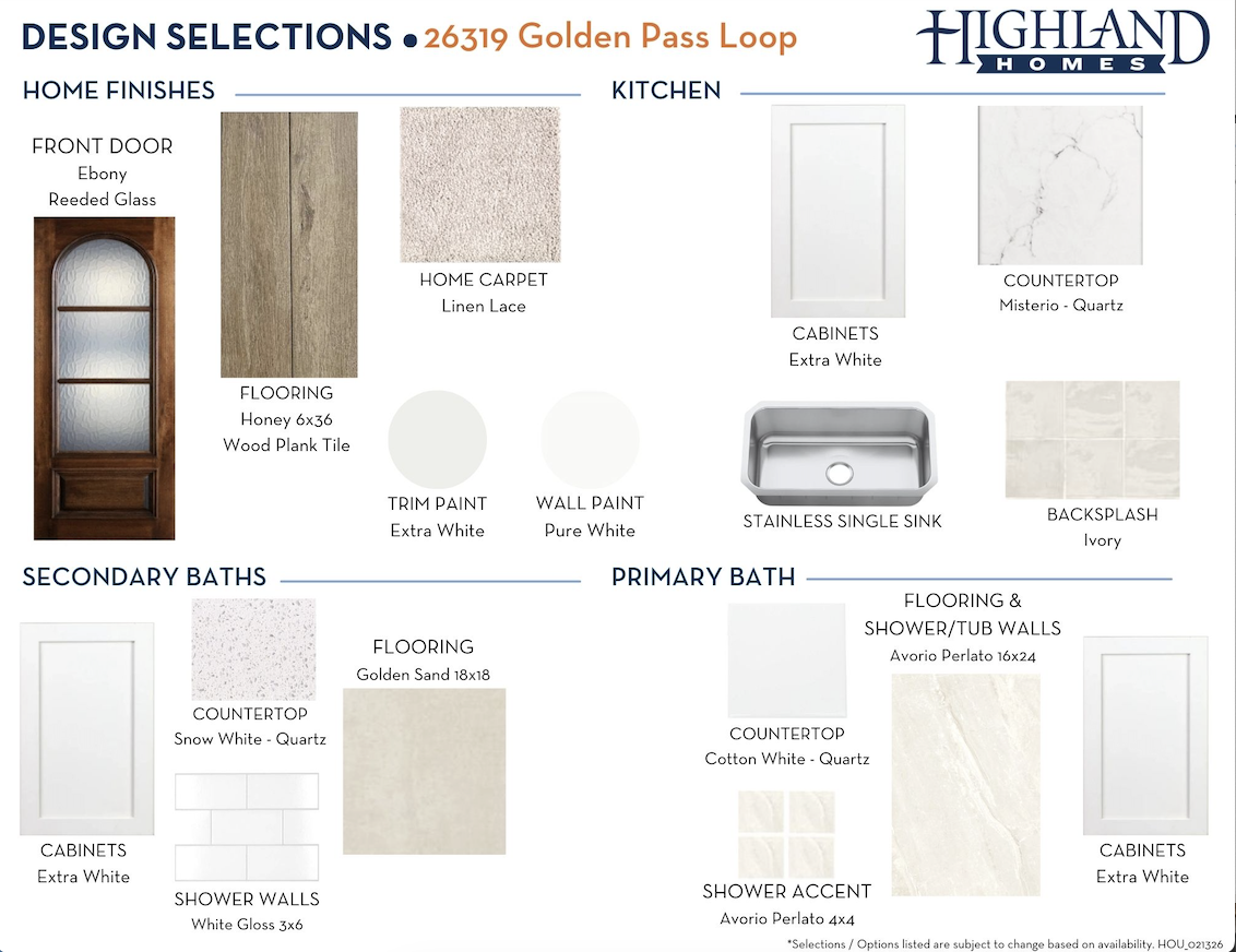 Since this home is already under construction, all structural options are finalized. However, depending on the level of completion, some design options may still be selected.