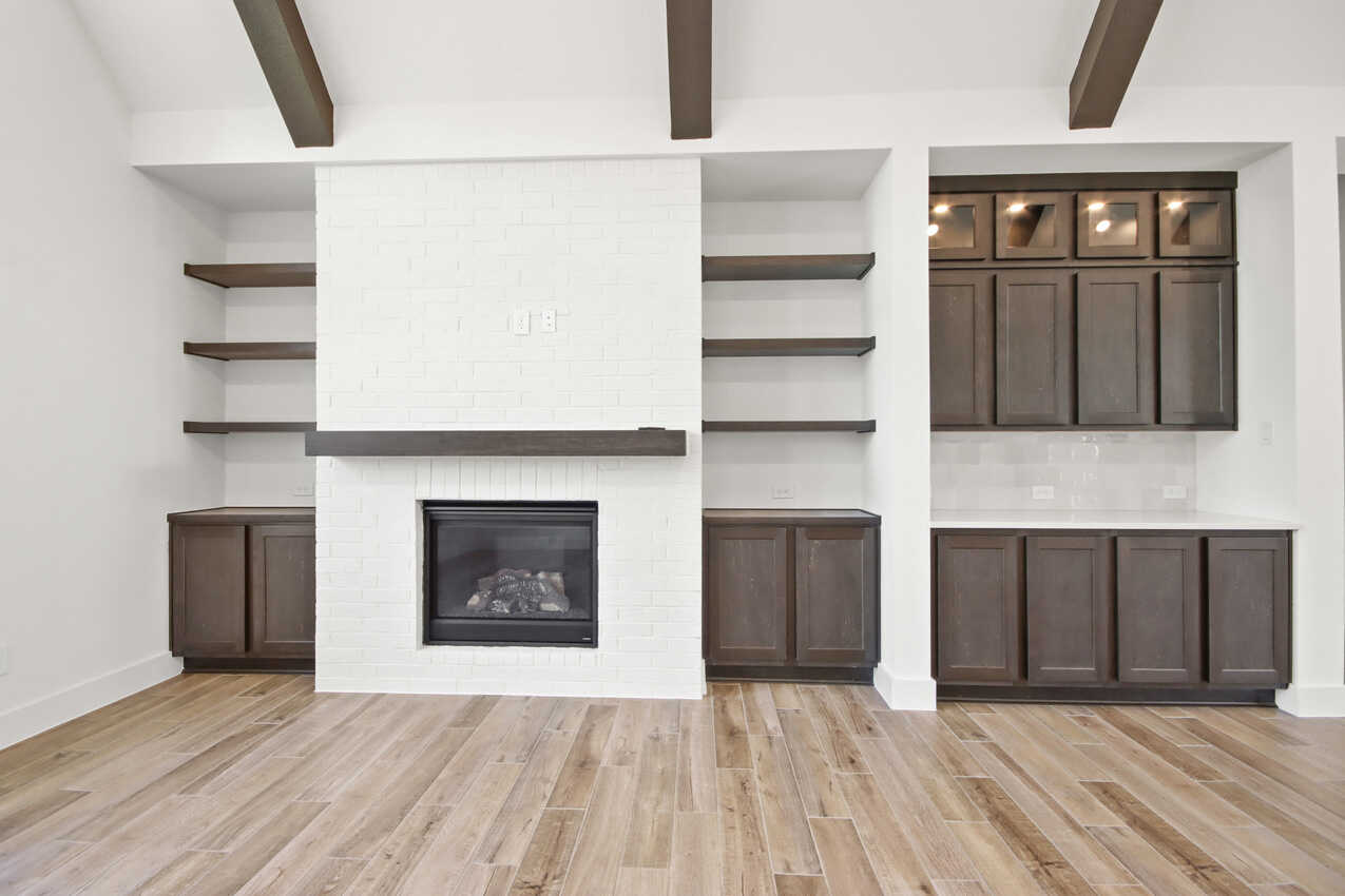 Primary Bath - Shower ILO Tub, Entertainment Room ilo Bedroom, Bathroom, Rear Brick w/Primary Bedroom extension, Powder ilo Storage, Cabinets at Family Room, Fireplace (at Family Room), Hutch