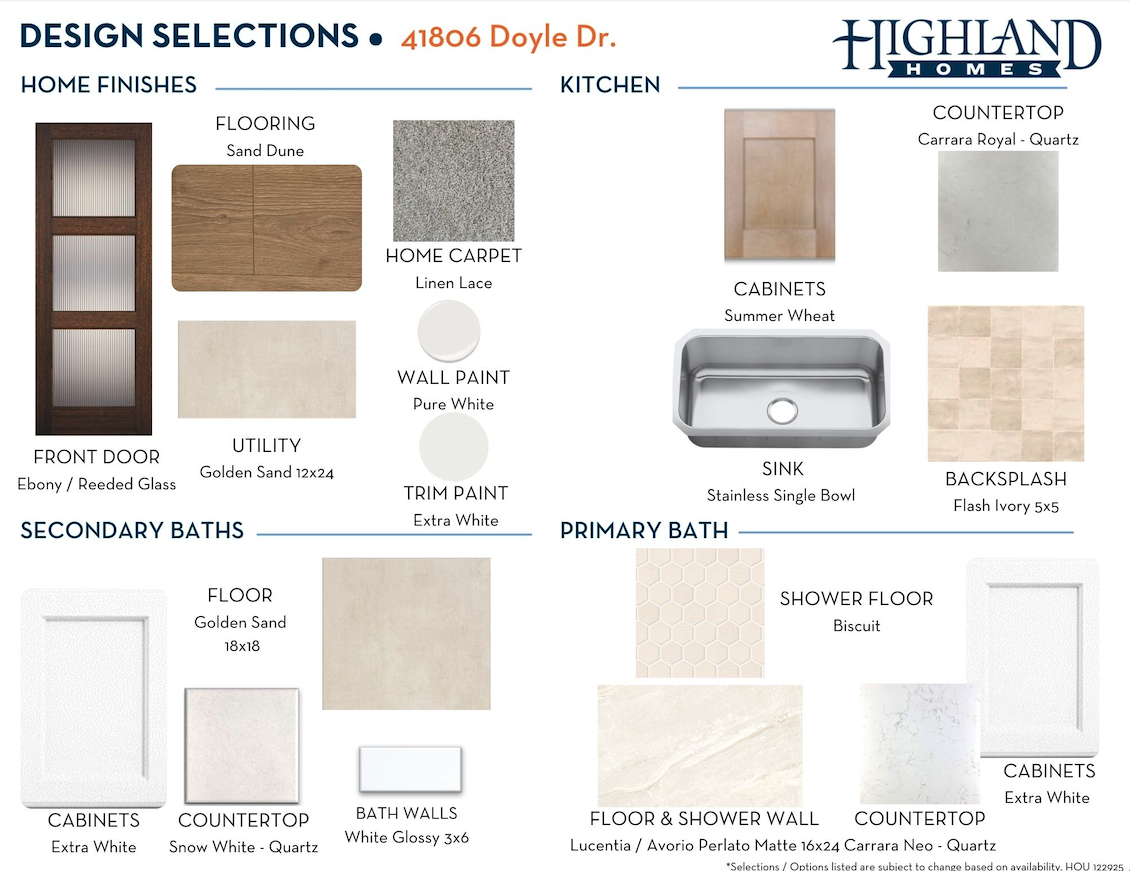 Since this home is already under construction, all structural options are finalized. However, depending on the level of completion, some design options may still be selected.