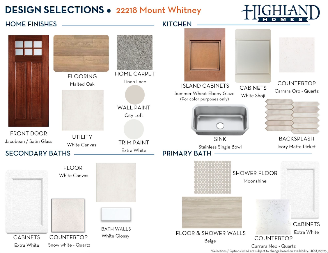 Since this home is already under construction, all structural options are finalized. However, depending on the level of completion, some design options may still be selected.