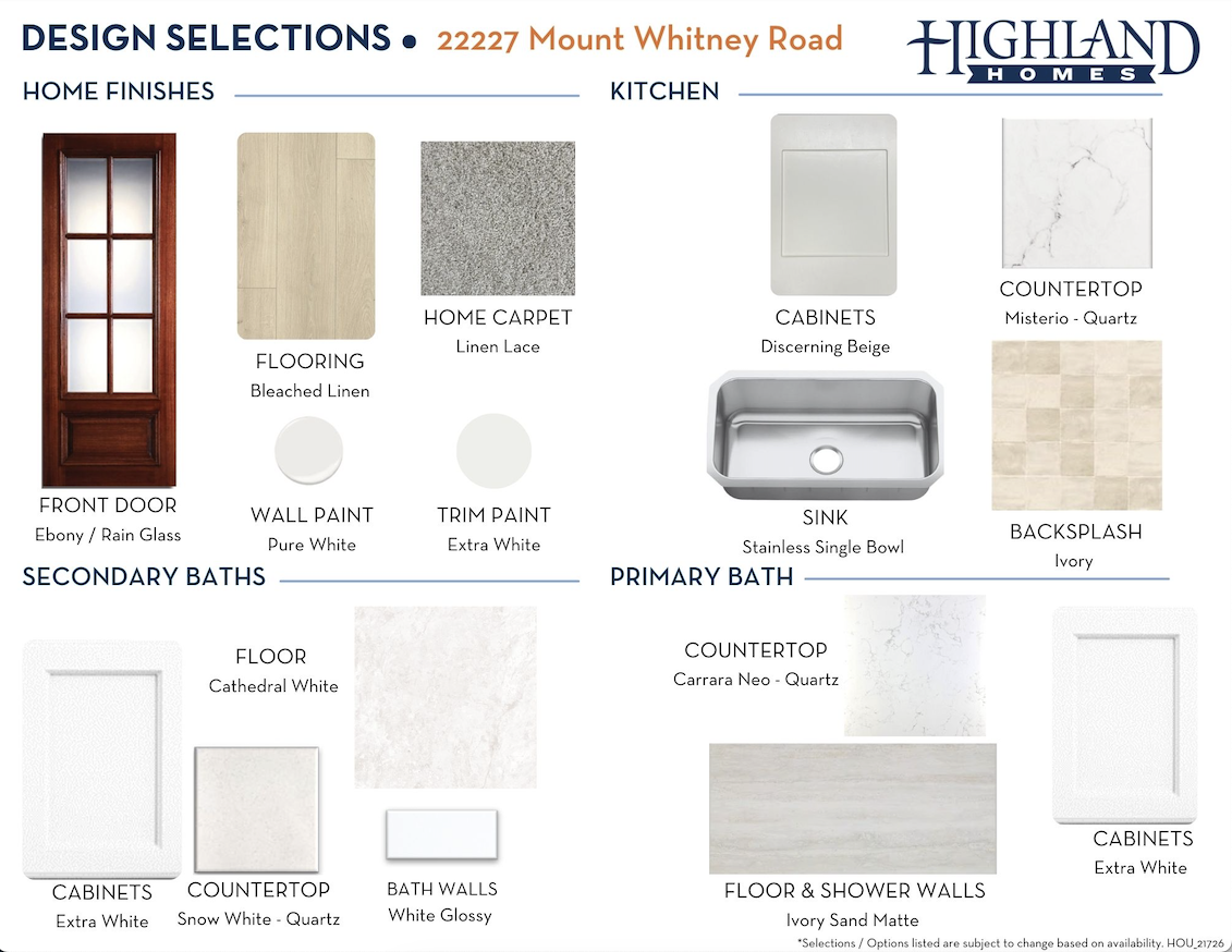 Since this home is already under construction, all structural options are finalized. However, depending on the level of completion, some design options may still be selected.